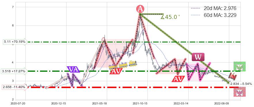 ♞ 20日均线:2.976,60日均线:3.229→ 快线<慢线