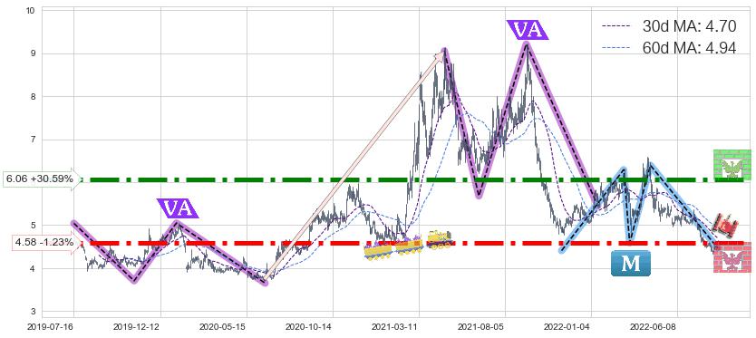 ♘ 阻力价格位6.06,可信任强度90.44%,距离最后交易2022-08-12形成的收盘价格4.64相差 +30.59%