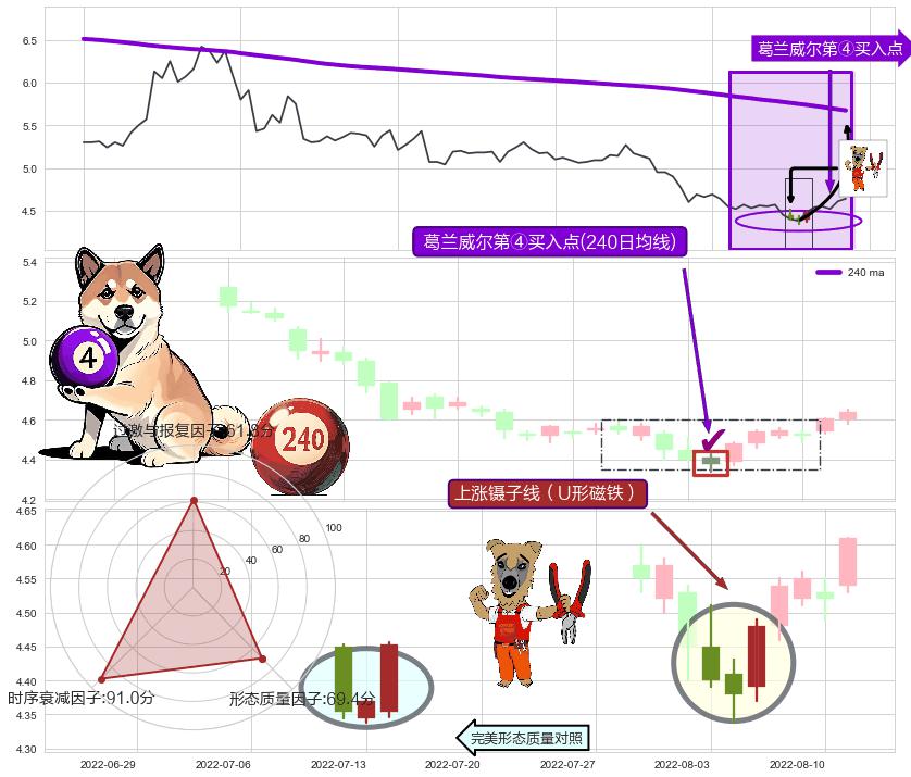 ♘ 支撑价格位4.58,可信任强度94.30%,距离最后交易2022-08-12形成的收盘价格4.64相差 -1.23%