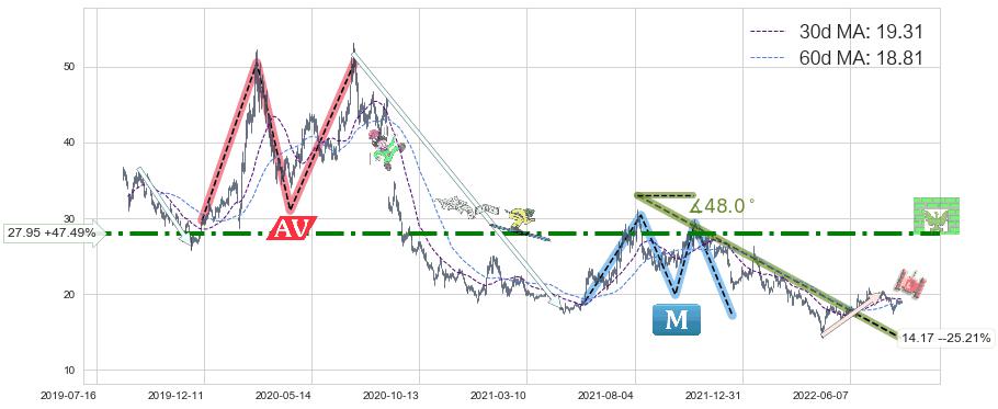 ♘ 阻力价格位27.95,可信任强度77.95%,距离最后交易2022-08-12形成的收盘价格18.95相差 +47.49%