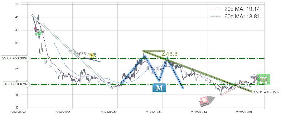 ➣ 【已确认突破】最后价格:18.95与最小【整理】第一目标价格→(2022-11-25: 4.22 )相较: 下跌空间【较大】