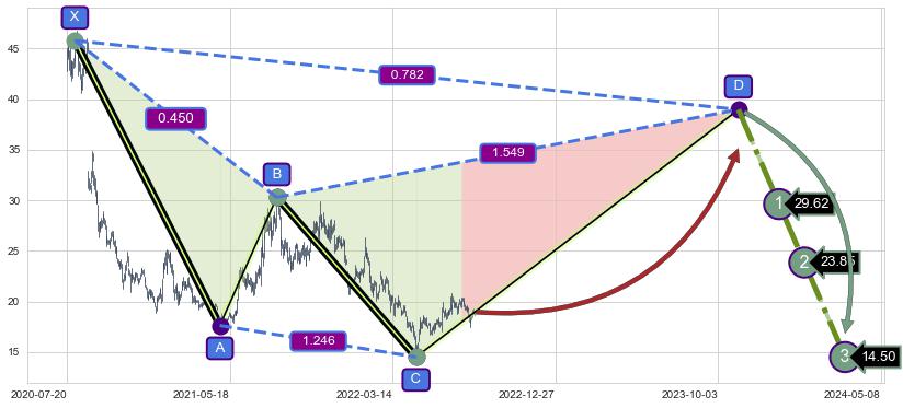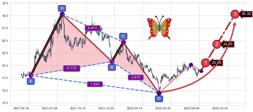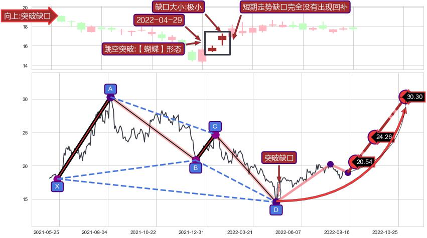 ➣ 已完成【蝴蝶】形态起点X: 2021-05-21, 终点D: 2022-04-26, 共227交易日