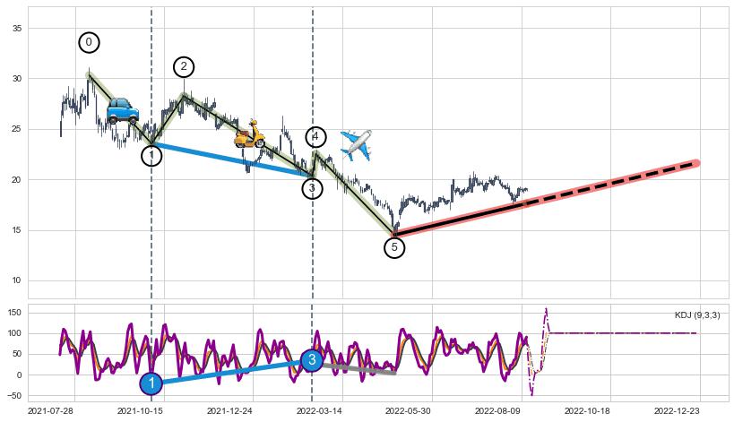 ➣ AI预测: 假定反转启动后, 第❸目标位置(2024-05-08, 14.50)