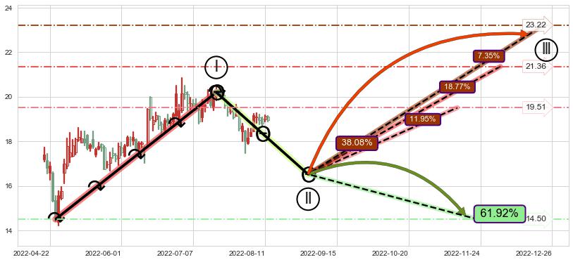 ➢ AI预测: 假定反转继续,第❸价格目标位置(2022-09-14, 14.50)
