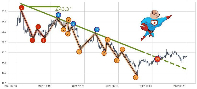 ⚔️ 2021-08-09-2022-05-09下跌趋势存在反转上涨[机会],其原下跌趋势的阻力位(15.91)已被突破[强支撑信号],原下跌趋势角度: 43.3˚