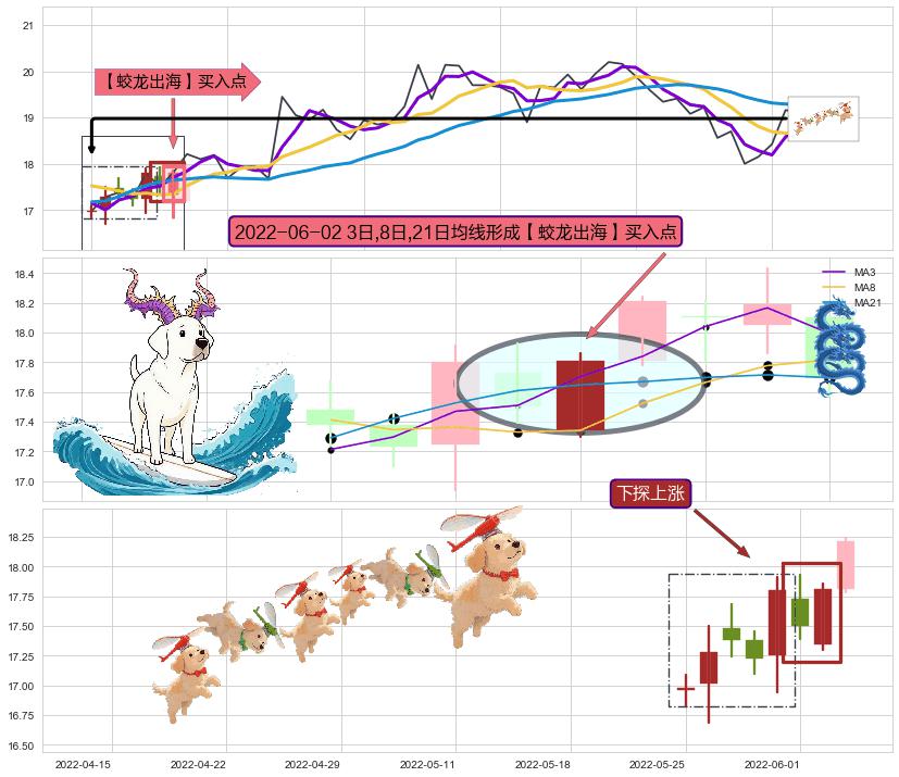 | 4 🅚:双针探底 ➕ 🎢:【蛟龙出海】买入点均线组合买入点信号形成后,猜想后续阻力突破,后市持续上涨 ☞ 看多信号 ⇥ 【均线】交织【🅚线】⇥ 综合量化分数: 52 | > |