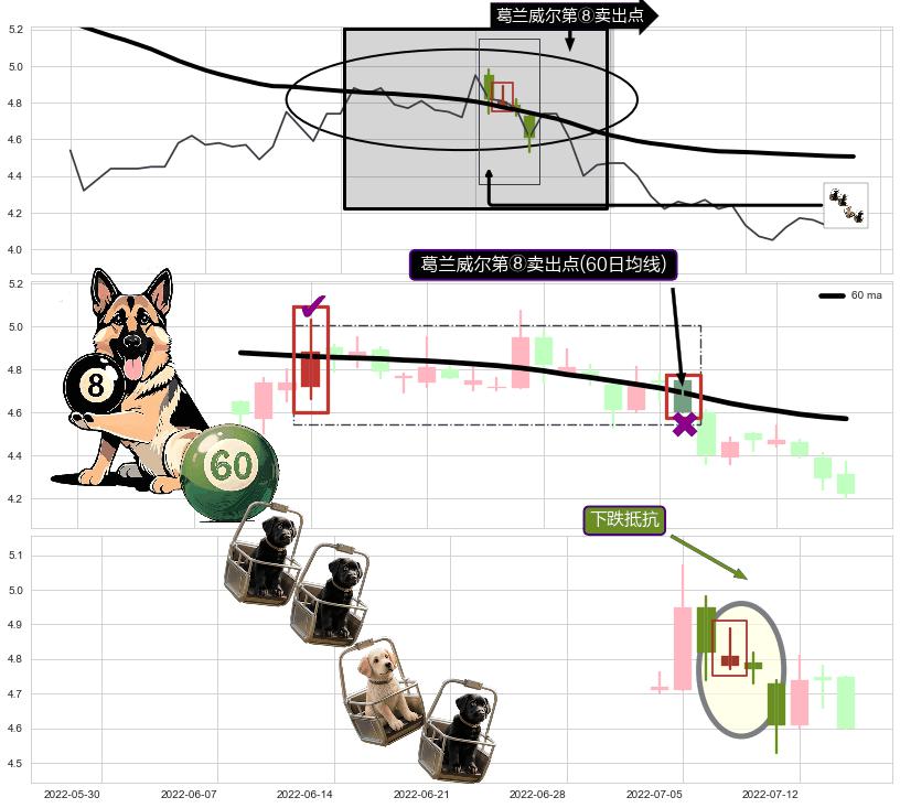 | 2 🅚:下跌两颗星 | 下跌三颗星 ➕ 🎢:葛兰威尔第⑧卖出点卖出点信号形成后,猜想后续持续下行(趋势跟踪) ☞ 看空信号 ⇥ 【均线】交织【🅚线】⇥ 综合量化分数: 43 | > |