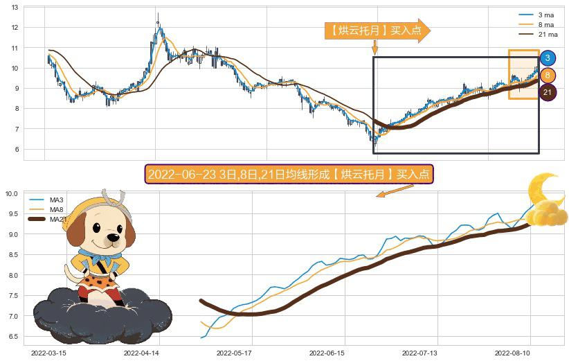 ⚀ 2022-04-27日-2022-08-12日显现 3日-8日-21日均线 【烘云托月】买入点 看多信号,后市看涨,买入