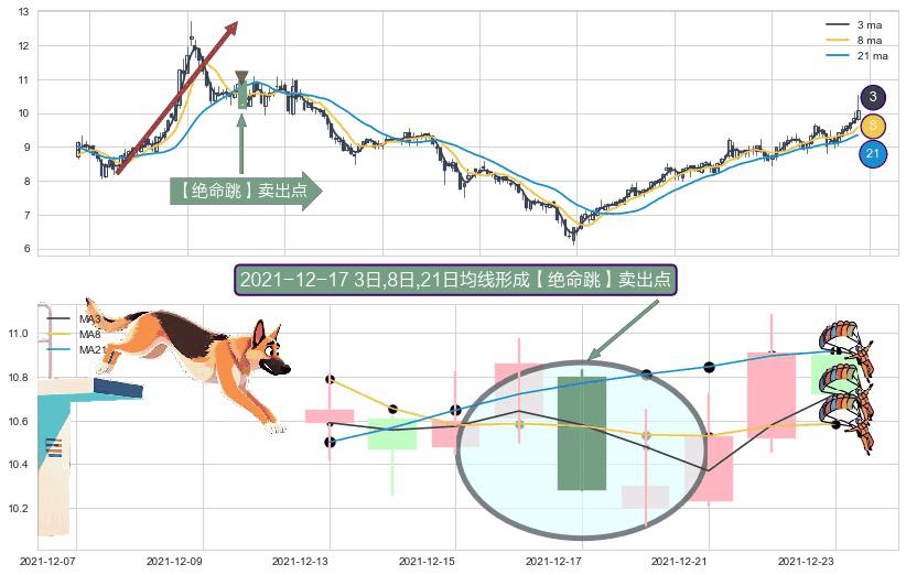 ⚀ 2021-12-17日显现 3日-8日-21日均线 【绝命跳】卖出点 看空信号,后市看跌,卖出