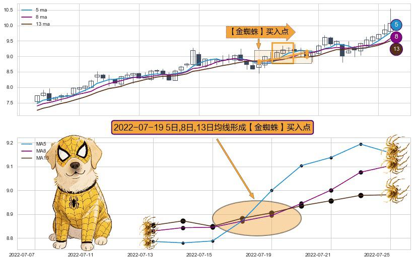 ⚀ 2022-07-19日显现 5日-8日-13日均线 【金蜘蛛】买入点 看多信号,后市看涨,买入