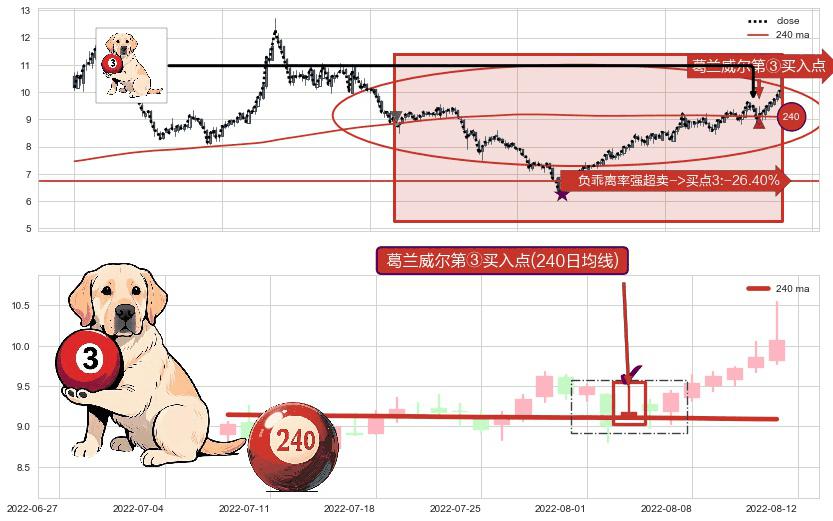 ⚀ 2022-08-03-日显现 葛兰威尔均线 240日均线 第③买入点 上升趋势的中继信号,后市看涨,买进信号