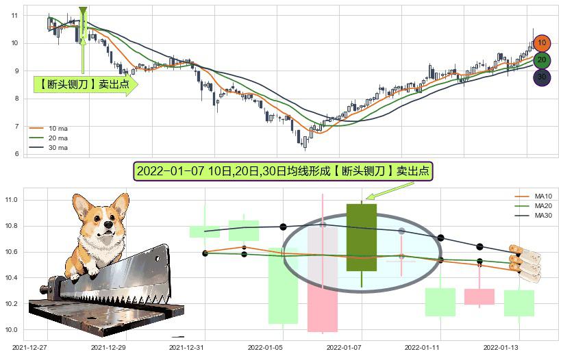 ⚀ 2022-01-07日显现 10日-20日-30日均线 【断头铡刀】卖出点 看空信号,后市看跌,卖出