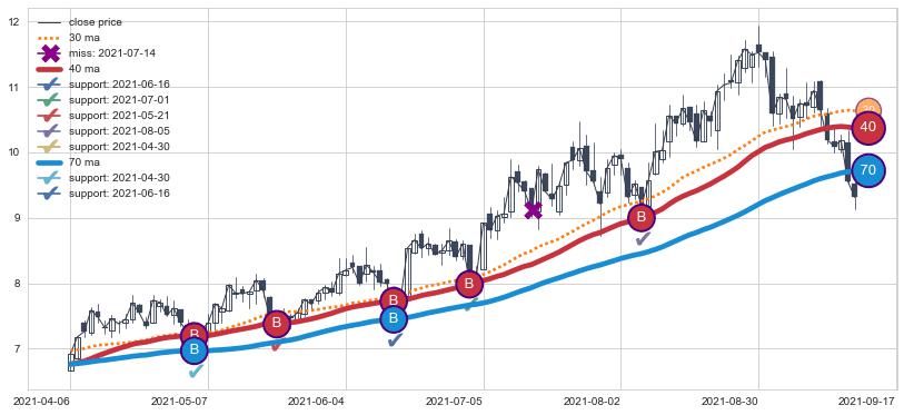 ⚁ MA3和MA8走势平行,且始终保持在短距离内,MA21始终在短中期均线下方,与短中期均线保持一定的距离,微微上行