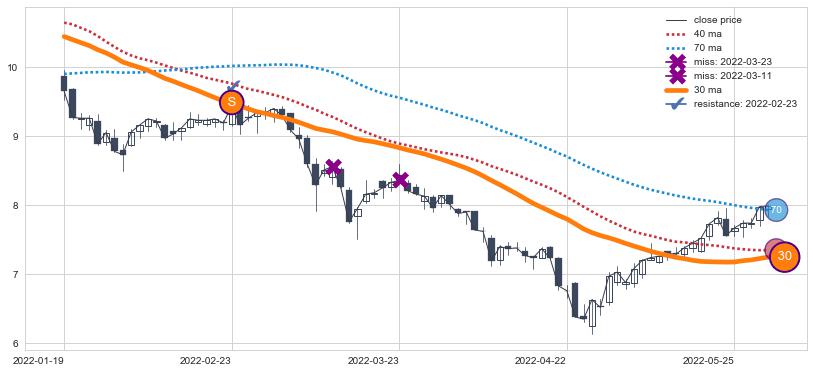 ⚄ 突破点后很长一段走势后才出现ma上翘点:2022-06-14-日,跌势转换涨势迟疑犹豫,信号【可信度低】