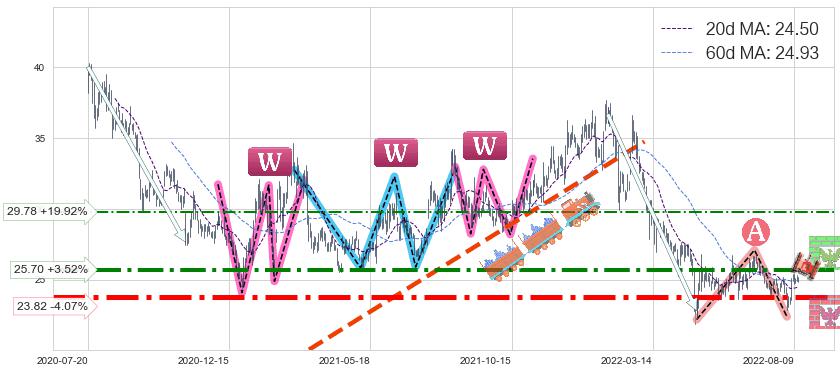 ♘ 阻力价格位25.70,可信任强度81.42%,距离最后交易2022-08-12形成的收盘价格24.83相差 +3.52%