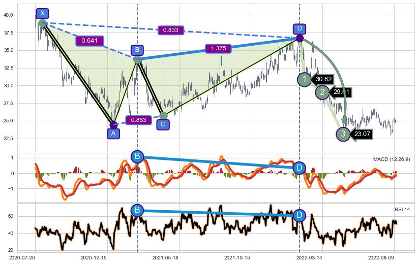 ➢ 谐波价格D点比B点高 ⤴,【MACD】指标D点比B点低 ⤵️