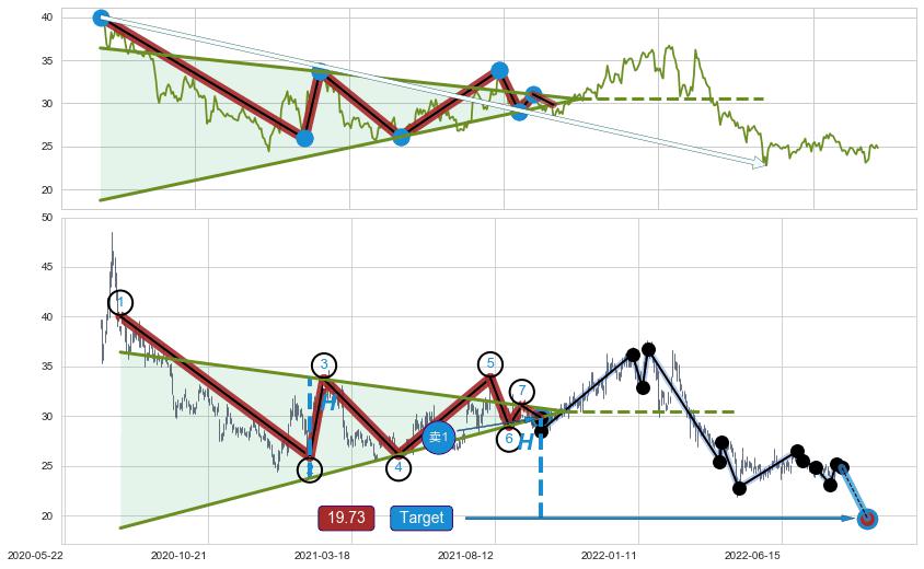 ➣ 2022-03-14到达第❷价格目标位置29.01