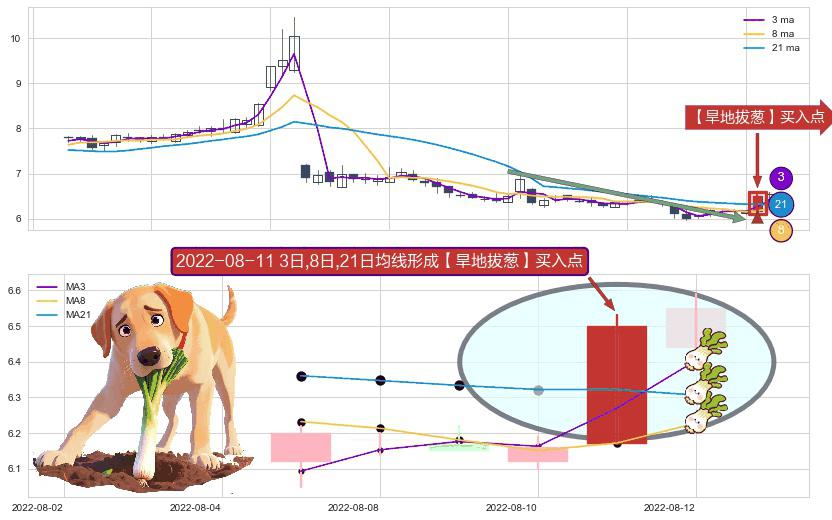 ⚀ 2022-08-11日显现 3日-8日-21日均线 【旱地拔葱】买入点 看多信号,后市看涨,买入