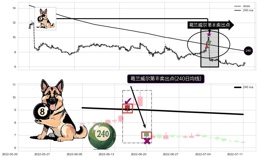 ⚀ 2022-06-20-日显现 葛兰威尔均线 240日均线 第⑧卖出点 下降趋势的中继信号,后市看跌,卖出信号