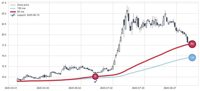 2020-04-01至2020-09-08 慢线与快线呈多头排列, 慢线与快线接触少,无缠绕