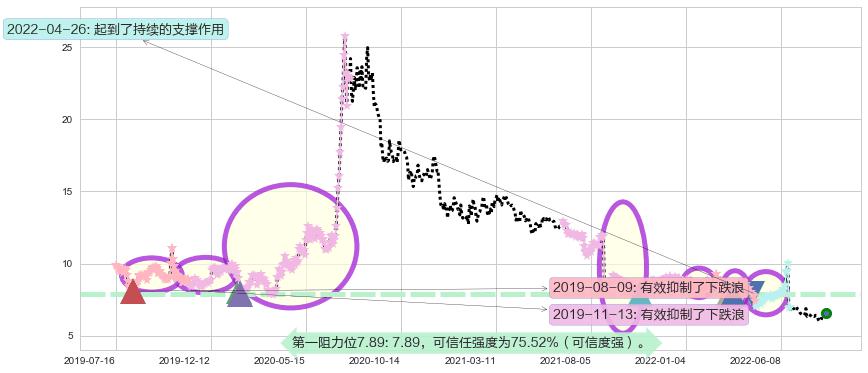 ♘ 阻力价格位7.89,可信任强度75.52%,距离最后交易2022-08-12形成的收盘价格6.55相差 +20.40%
