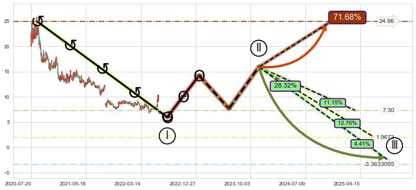 ➢ AI预测: 假定反转启动后, 第❷目标位置(2023-03-31, 8.16)
