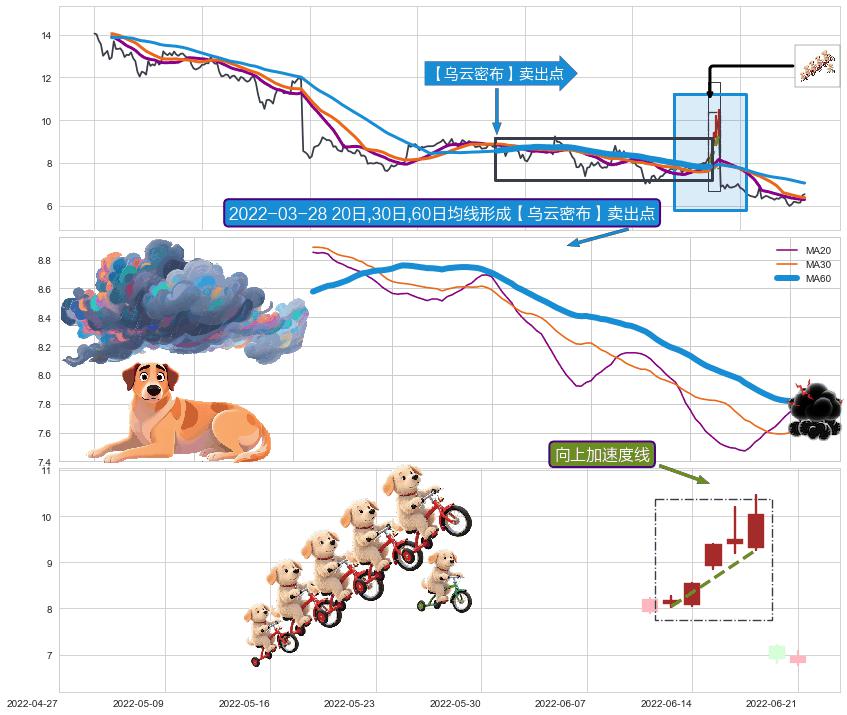| 4 🅚:倾盆大雨 ➕ 🎢:【乌云密布】卖出点均线组合卖出点信号形成后,猜想后续下行持续,下跌加速(趋势跟踪) ☞ 看空信号 ⇥ 【均线】交织【🅚线】⇥ 综合量化分数: 41 | > |