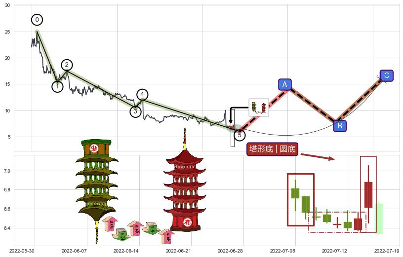 | 29 🅚:塔形底 | 圆底 ➕ 📡:谐波赛福猜想c点下沉击穿越过b点后报复性拉升上涨(均值回复) ☞ 看多信号 ⇥ 【🅚线】交织【图形】⇥ 综合量化分数: 51 | > |
