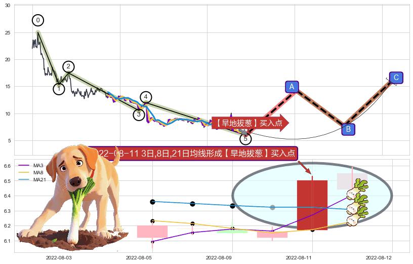 | 2 🅚:【旱地拔葱】买入点 ➕ ☯️:缠论买卖点下降缠中枢AB形成后猜想拐点1买已到达,猜想后续持续拉升(均值回复) ☞ 看多信号 ⇥ 【均线】交织【图形】⇥ 综合量化分数: 60 | > |