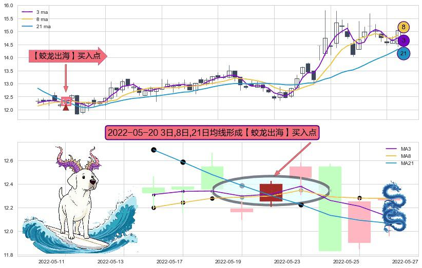 形态多维评估: ⚀ 2022-05-20日显现 3日-8日-21日均线 【蛟龙出海】买入点 看多信号,后市看涨,买入