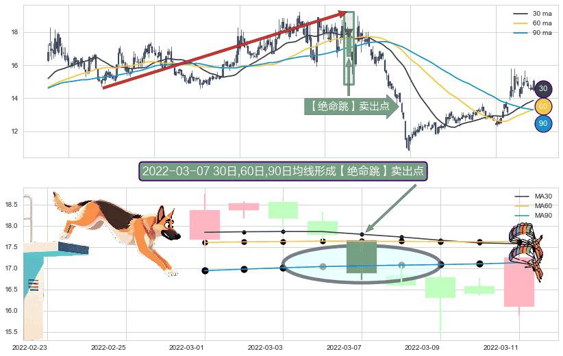 形态多维评估: ⚀ 2022-03-07日显现 30日-60日-90日均线 【绝命跳】卖出点 看空信号,后市看跌,卖出