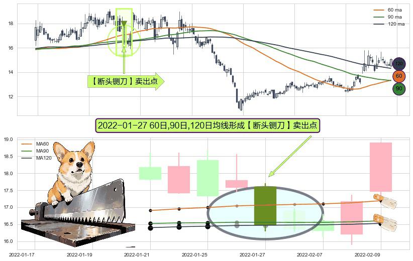 形态多维评估: ⚀ 2022-01-27日显现 60日-90日-120日均线 【断头铡刀】卖出点 看空信号,后市看跌,卖出