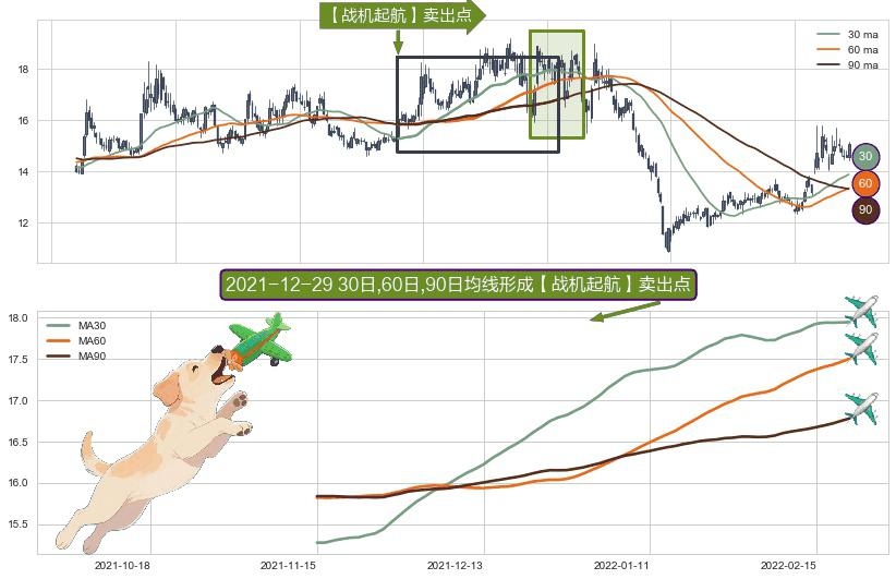 形态多维评估: ⚀ 2021-11-15日-2022-02-21日显现 30日-60日-90日均线 【战机起航】卖出点 看空信号,后市看跌,卖出
