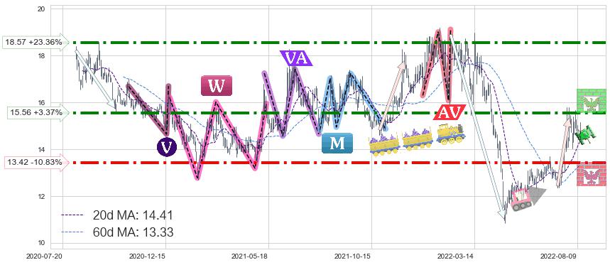 ♘ 阻力价格位15.56,可信任强度78.35%,距离最后交易2022-08-12形成的收盘价格15.05相差 +3.37%