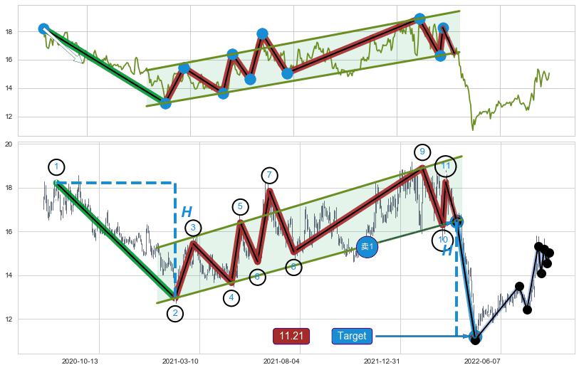 ➣ 2022-04-11到达第❷价格目标位置14.73