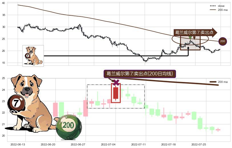 ⚀ 2022-07-04-日显现 葛兰威尔均线 200日均线 第⑦卖出点 下降趋势的中继信号,后市看跌,卖出信号