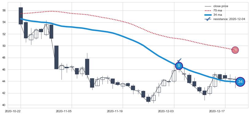 ⚂ 2022-06-20-日均线向上突破,2022-07-21-日重新下穿均线破位,均线阻力再次生效