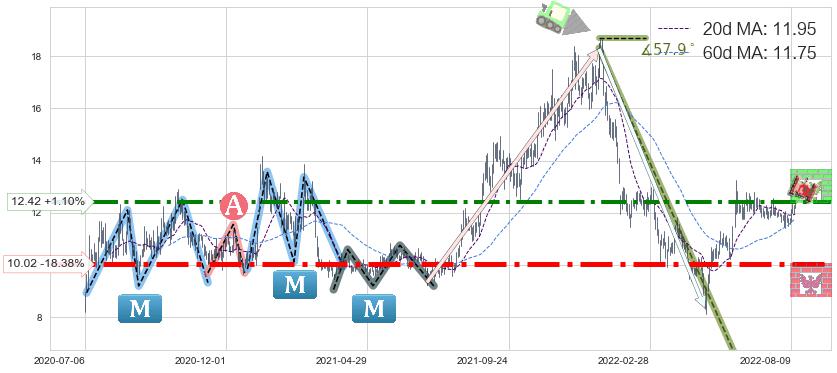 ♘ 阻力价格位12.42,可信任强度74.95%,距离最后交易2022-08-12形成的收盘价格12.28相差 +1.10%