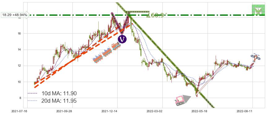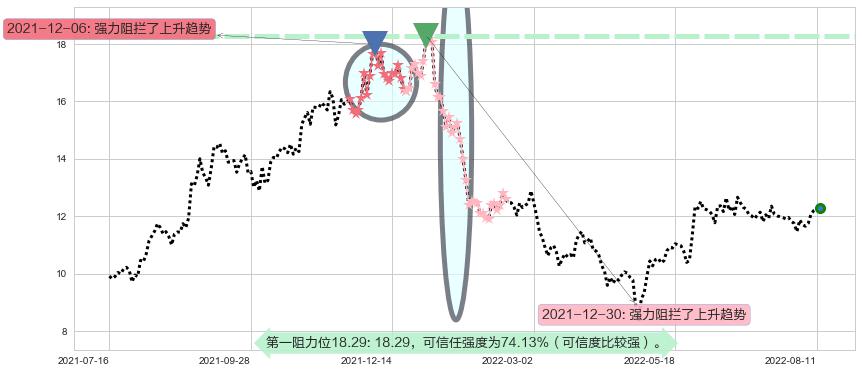 ♘ 阻力价格位18.29,可信任强度74.13%,距离最后交易2022-08-12形成的收盘价格12.28相差 +48.94%