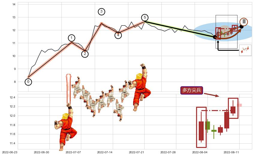 | 3 🅚:中流砥柱形态 ➕ 🌊:波浪理论上涨5浪延续:猜想C点强支撑小回调终止,猜想保持上涨5浪方向拉升(均值回复后大周期继续趋势跟踪) ☞ 看多信号 ⇥ 【🅚线】交织【图形】⇥ 综合量化分数: 53 | > |