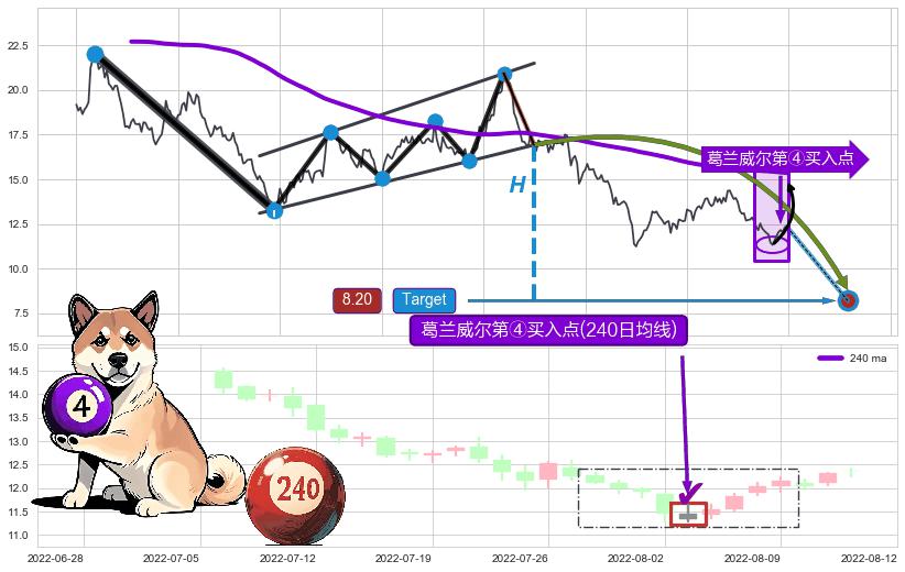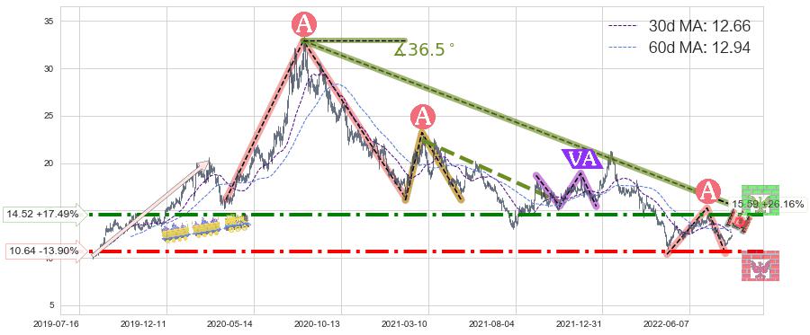 ♘ 阻力价格位14.52,可信任强度84.86%,距离最后交易2022-08-12形成的收盘价格12.36相差 +17.49%