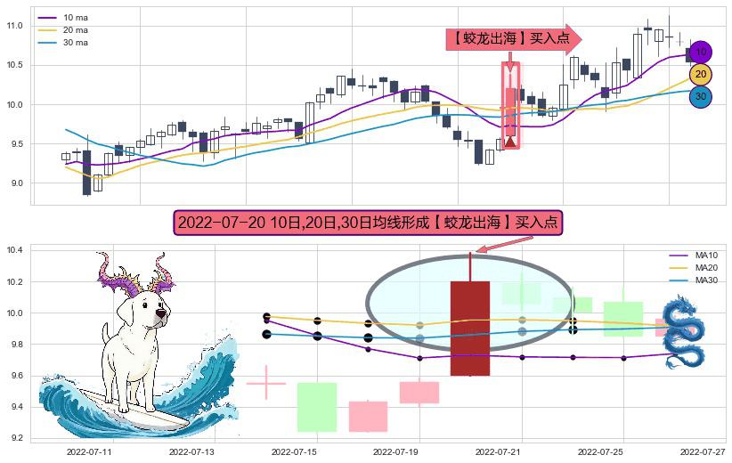 ⚀ 2022-07-20日显现 10日-20日-30日均线 【蛟龙出海】买入点 看多信号,后市看涨,买入