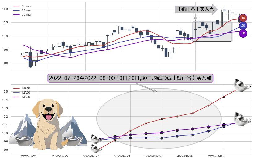 ⚀ 2022-07-29-日至2022-08-09-日显现 10日-20日-30日均线 【银山谷】买入点 看多信号,后市看涨,买入