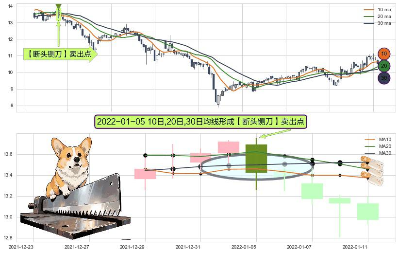 ⚀ 2022-01-05日显现 10日-20日-30日均线 【断头铡刀】卖出点 看空信号,后市看跌,卖出