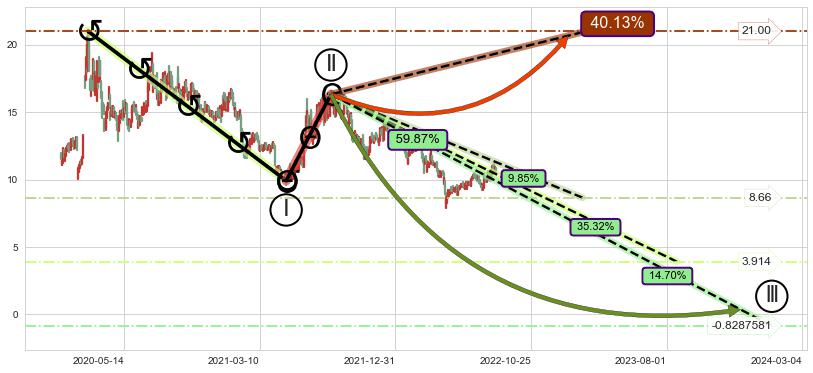 ➣ AI预测: 假定反转启动后, 第❶目标位置(2024-10-14, 14.79)
