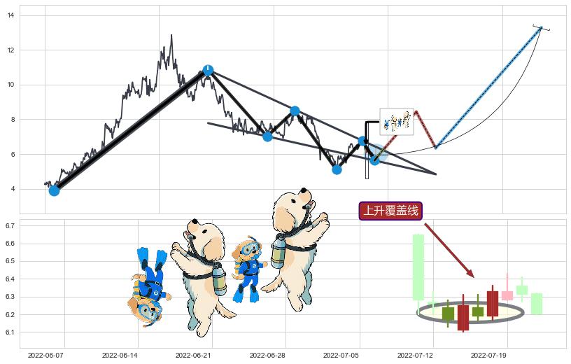 ➢ AI预测: 假定反转启动后, 第❷目标位置(2023-07-13, 6.28)