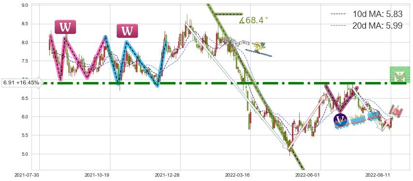 ➢ 【仅预测突破】最后价格:5.93与预测突破价格:7.00→【空间较大】后续最小【反转】第一目标价格→(2022-09-26: 8.40 )