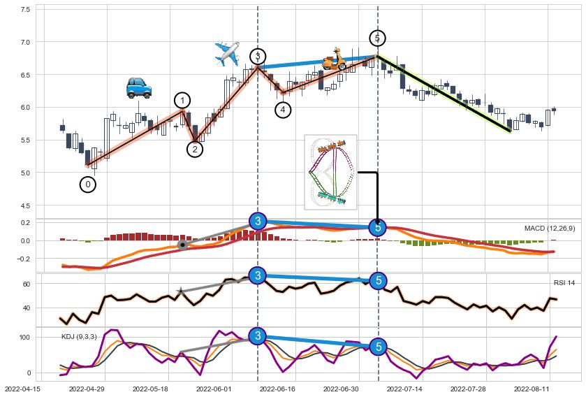 ➢ 1,3,5驱动浪MACD, RSI, KDJ走势都出现【常规背离】反转信号增强