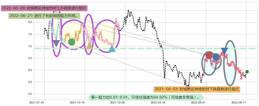 ♘ 阻力价格位6.91,可信任强度94.92%,距离最后交易2022-08-12形成的收盘价格5.93相差 +16.45%