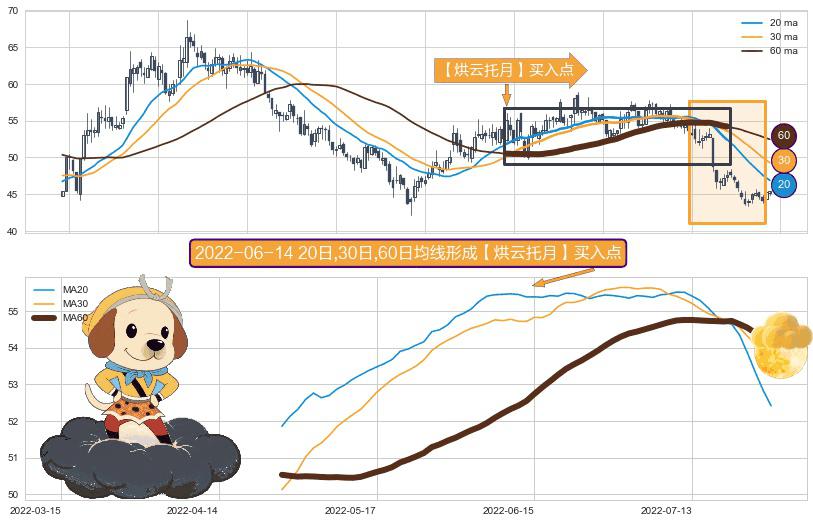 形态多维评估: ⚀ 2022-04-26日-2022-07-27日显现 20日-30日-60日均线 【烘云托月】买入点 看多信号,后市看涨,买入